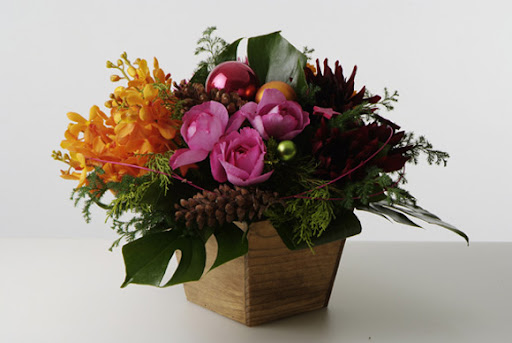 華やかに、豪華に贈りたいならこれ!大好評のクリスマスアレンジメントは目立つ事うけあいです!大人の色使いの妙がギンコテイスト。クリスマスボールや、オーナメント、松ぼっくりなどが入っています!ご予算に合わせてどうぞ。